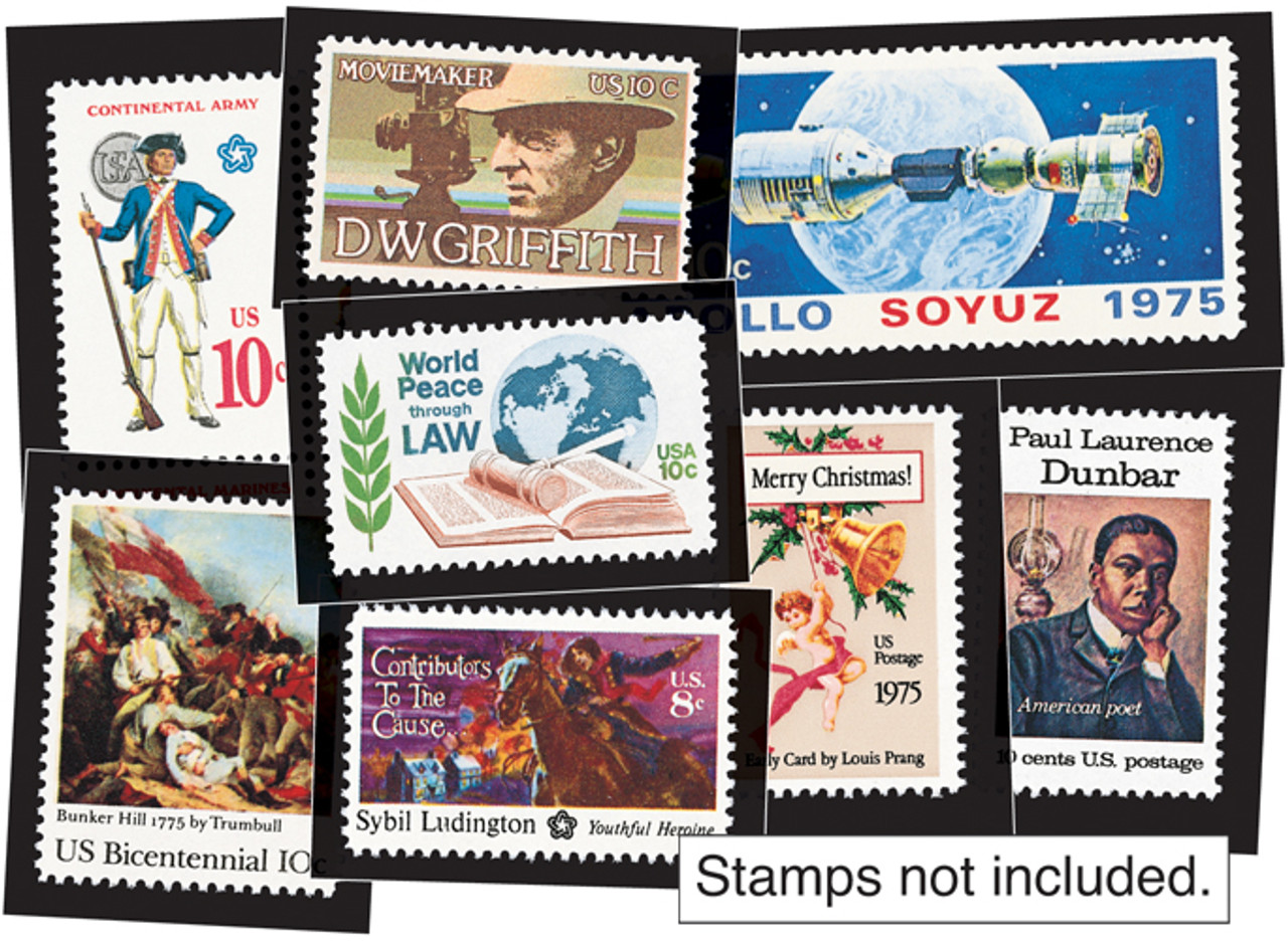 Getting the right mounts to protect your mint 1975 commemorative year set couldn’t be easier! Archival-quality, no-glare black mounts are already selected and pre-cut – so you have more time to enjoy your stamp collection. Plus you’ll really appreciate the clean, professional edges. Quantity: 20.