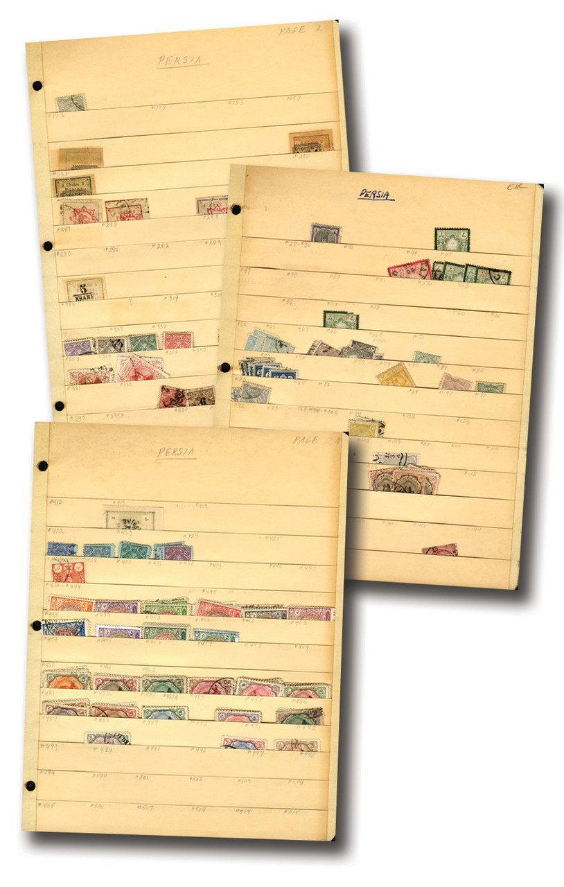 350+ used Iran stamps, 1876-1936.  In stock pages.  Estimated Scott Catalogue value $800.